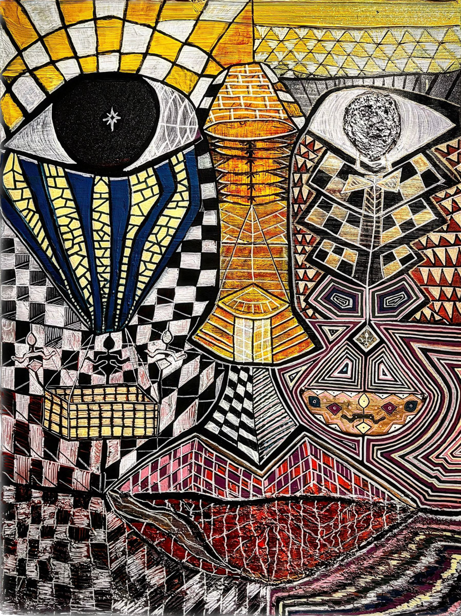 The coexistence of unsettling imagery and vivid color creates a dynamic visual tension that reflects inner states, contradictions, and the complexity of human experience.
